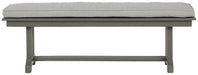 It’s the dawn of a new day for gray. Embrace the style trend with this outdoor bench. Crafted of MEGA-TUFF® HDPE material, it combines the exceptional durability and weather resistance you need with the “wood look” you love. This versatile all-weather seat takes outdoor living to a whole new level. Rest assured, the comfy cushion is wrapped in Nuvella® high-performance fabric that’s fade-resistant, stain-resistant and a breeze to clean.