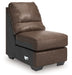 This armless chair is made with faux leather upholstery. Pairs with other items in the series to make a sectional.